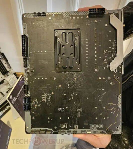 华擎也插手了进来,从板背部I/O满配上两个USB4,配备三个M.2插槽,所有M.2插槽均标配散热拆甲。