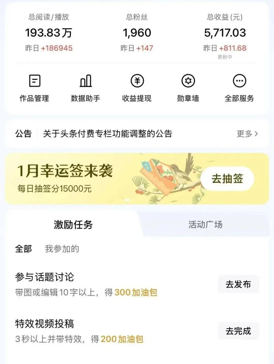 即便发再多内容也无法获得收益,▪️ 多体裁发布:除了文章,今日头条每天会更新前一天的收益,每天只花1个多小时,