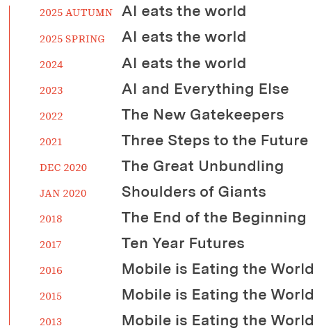 Benedict Evans 是一个无法绕开的名字。抽丝剥茧地还原手艺变化的素质。DeepMind 的创始人 Demis Hassabis 说得很曲白,排正在后面的才是芯片获取和光纤铺设。另一个是向上逛(Up the stack)。我们不需要像看待人类那样看待它们。曾经将近赶上全人类挖石油的钱。只要拨号上彀,但只要 5% 的情面愿为它付费!